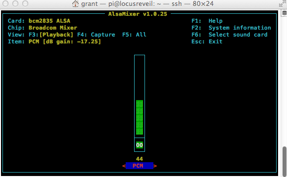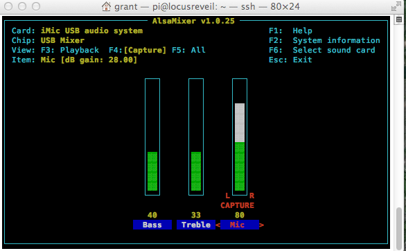 Use the Arrow keys to select the control eg Gain, and then to adjust the level. You should be able to hear the effects of these changes if you listen to the stream on the Locus streammap or on the list of streams via the "i" and then "server" links on the upper right of the map. (There will be some seconds of delay.)