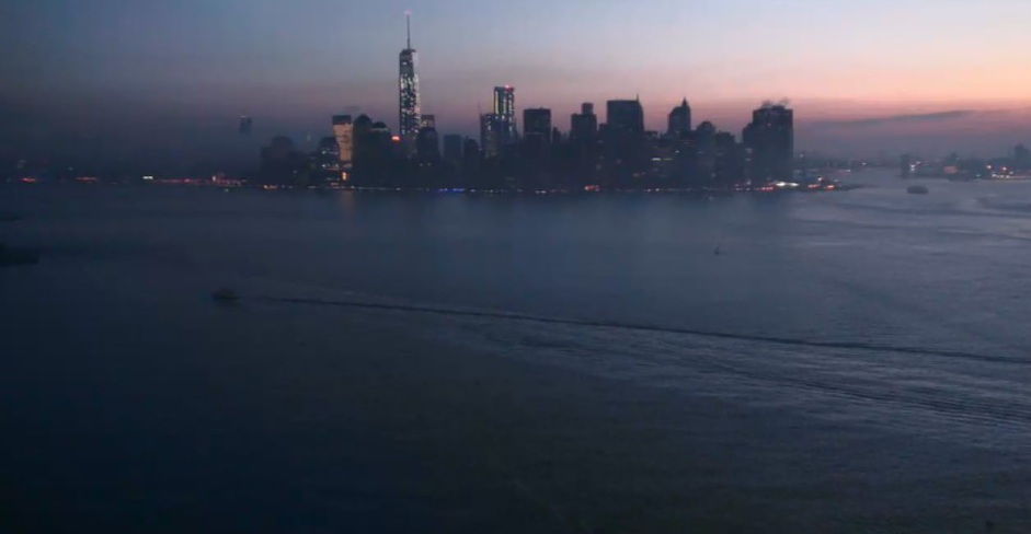 New York, USA Manhattan from the Statue of Liberty. Urban drone |
