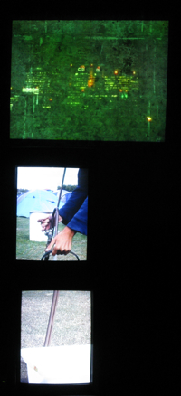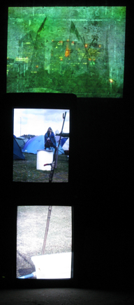 | standpipe climate camp blackheath, london august 2009 recycled TVs, projection | ||